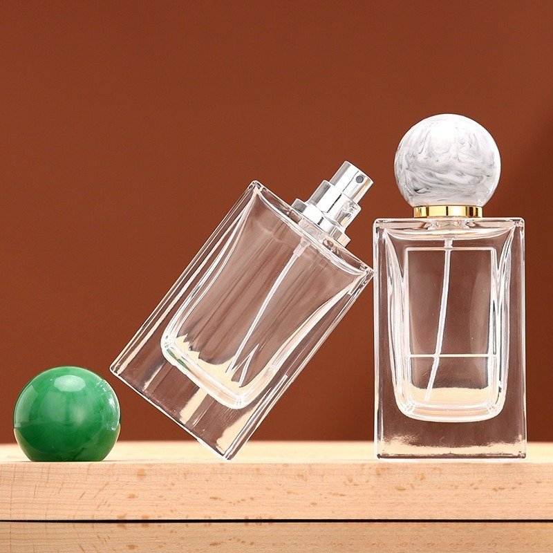 Premium 100ml Square Glass Perfume Bottle with Spherical Resin Cap