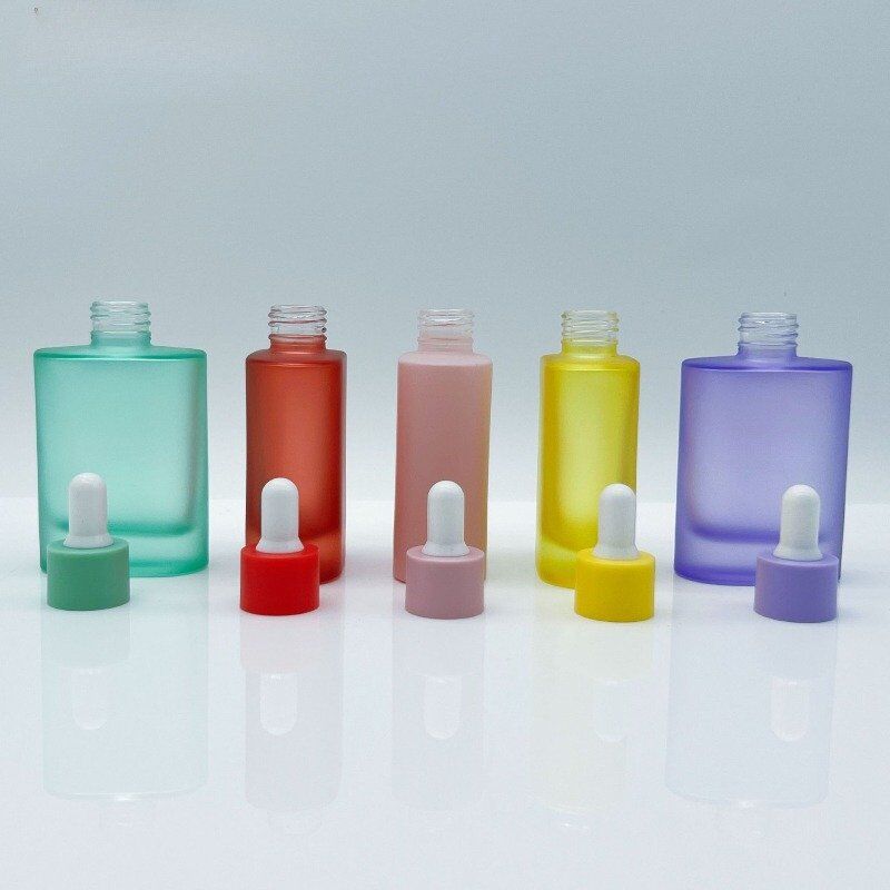 Flat Glass Bottles (30ml & 50ml) – Chic, space-saving design for oils, serums & hair care. Made from UV-protective glass with dropper/cap options. Leak-proof, customizable, and travel-friendly. Perfect for luxury skincare, aromatherapy & DIY cosmetics. Sleek, sustainable, and brand-ready!