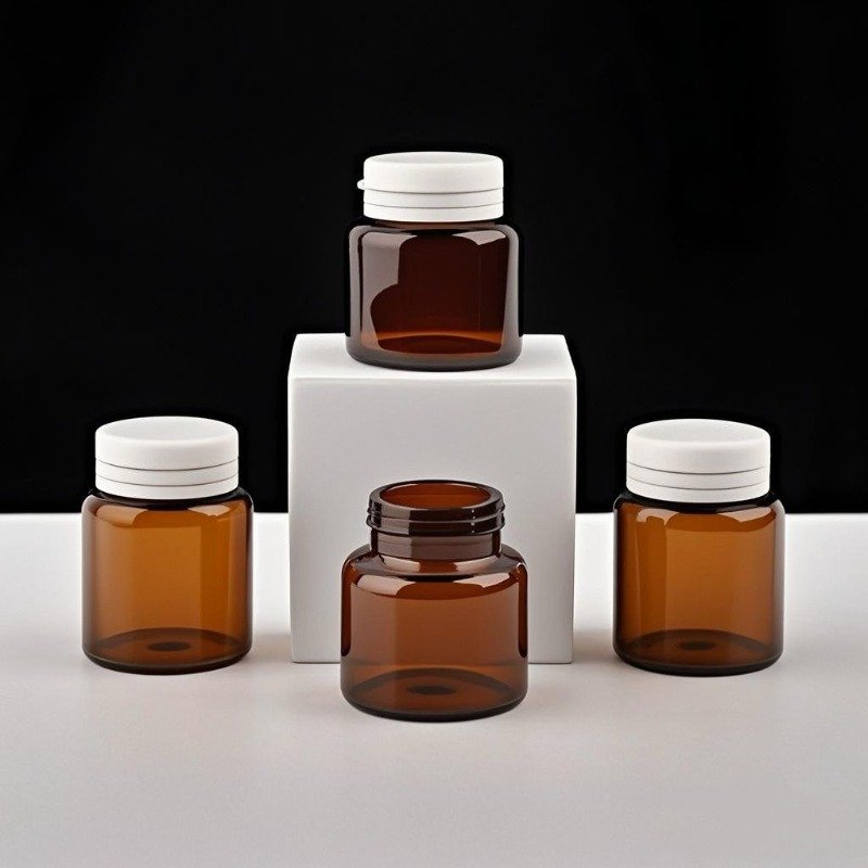 15g amber glass jar – Perfect for serums & light-sensitive creams. UV-protective, 32×35mm size, tear-off lid. 1,000 pcs MOQ, logo printing available. Great for vitamin C, retinol & luxury skincare. Ready stock for fast shipping. Contact us for custom orders!