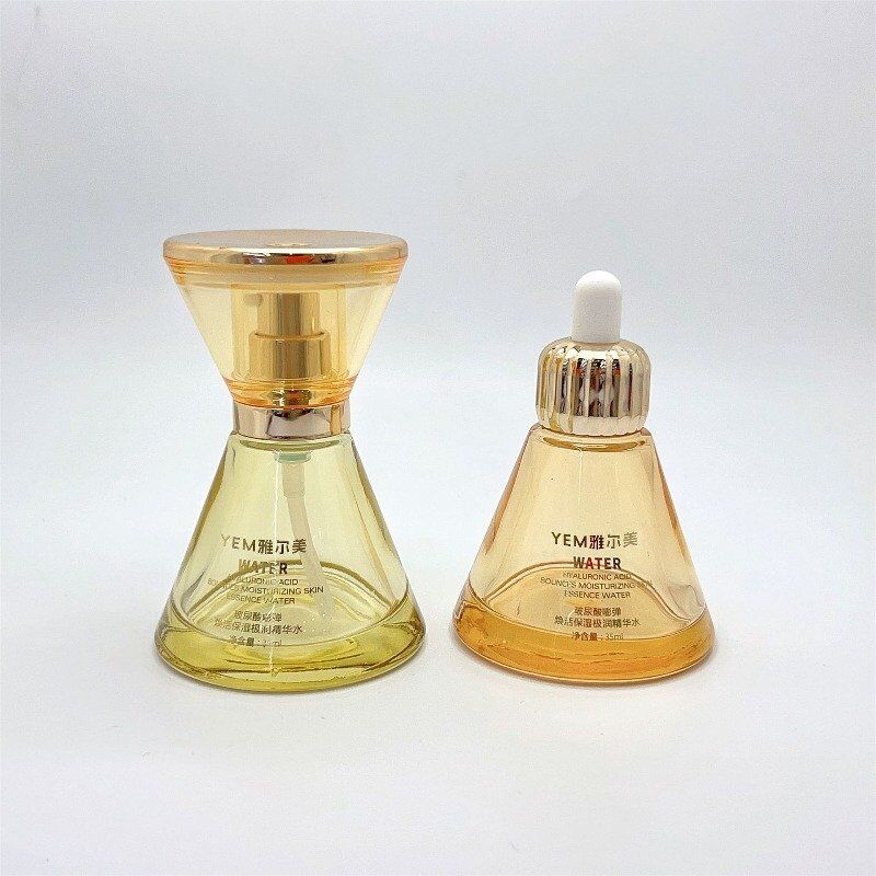Presenting our innovative “Hourglass Collection,” a sophisticated skincare packaging suite designed to make a lasting impression. This unique set features four distinct containers crafted from high-quality, transparent glass, shaped in the elegant silhouette of a sandglass. The collection includes: 40ml, 100ml, and 120ml bottles equipped with smooth, precision dispensing pump heads, and a complementary 50g cream jar.