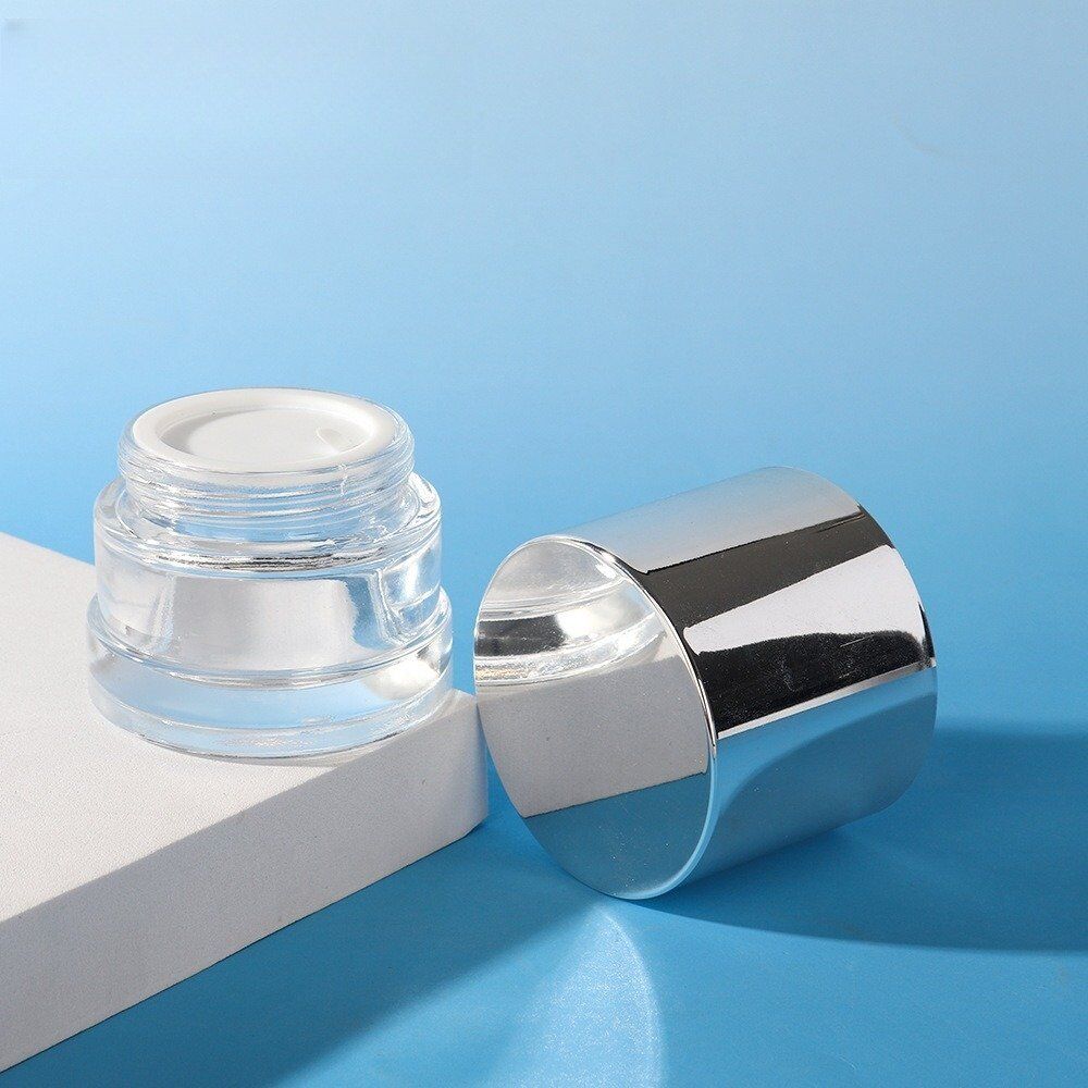 Luxury Clear Glass Cream Jar Skincare Packaging Gloss Silver Lid Gold Cap Facial Cream Container