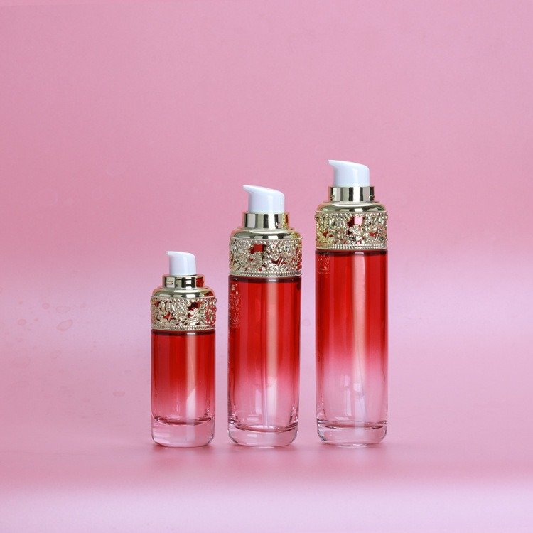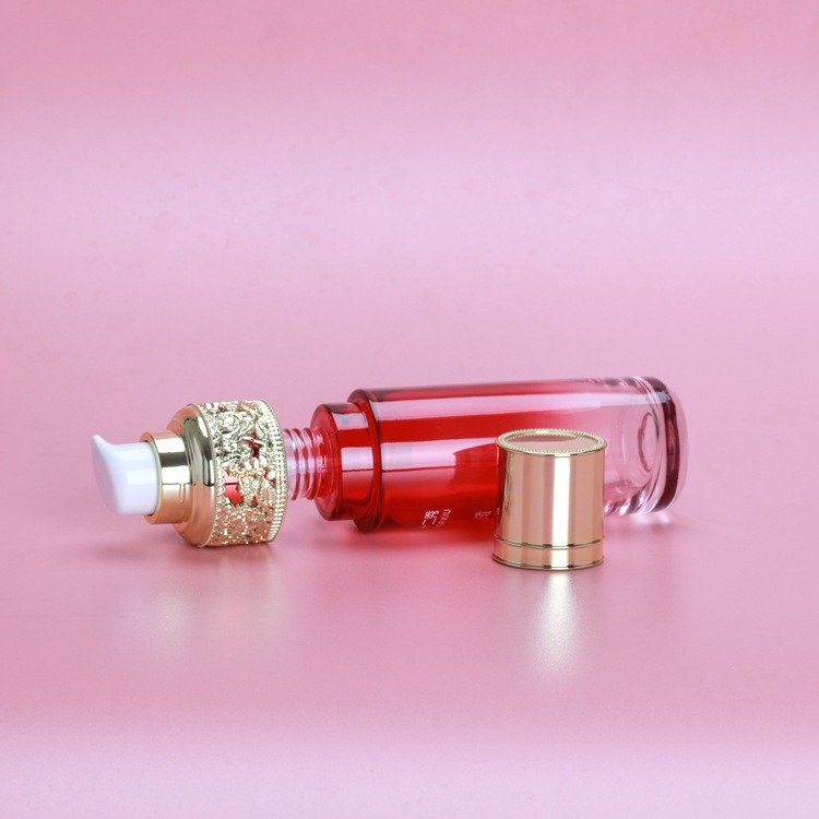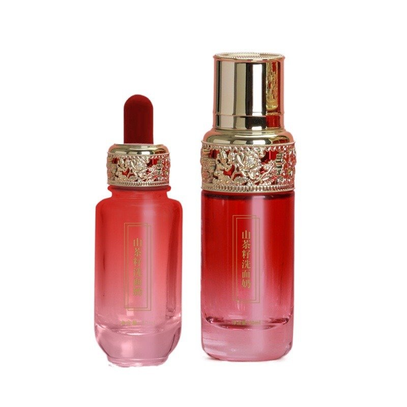 Elevate your beauty brand with this stunning 120ml pump bottle, 100ml toner glass bottle, 40ml 30ml serum bottle, 30g 50g cream jar for facial cream or eye cream packaging, featuring an elegant Chinese-style hollow-carved cap that exudes luxury and tradition. The intricate floral motifs and delicate craftsmanship make this bottle perfect for high-end toners, essences, or facial mists. Its thick, high-quality glass ensures durability while maintaining a premium aesthetic.