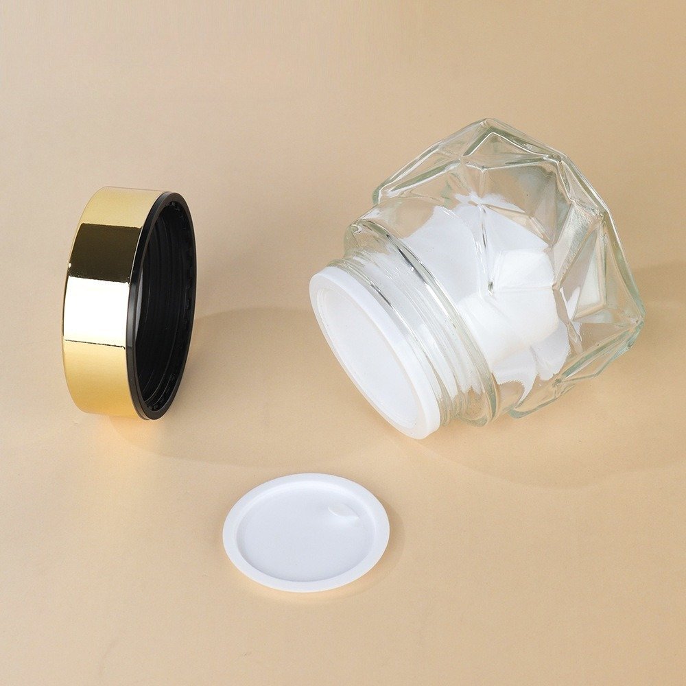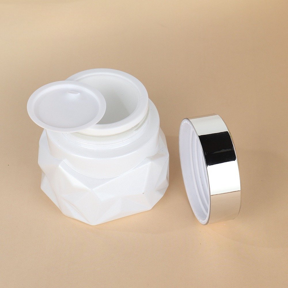Elevate your skincare line with these luxury diamond-shaped glass jars, featuring a 50g inner bottle for product freshness. Ideal for night creams, masks, and balms, they combine high-end aesthetics with practical design for discerning brands.