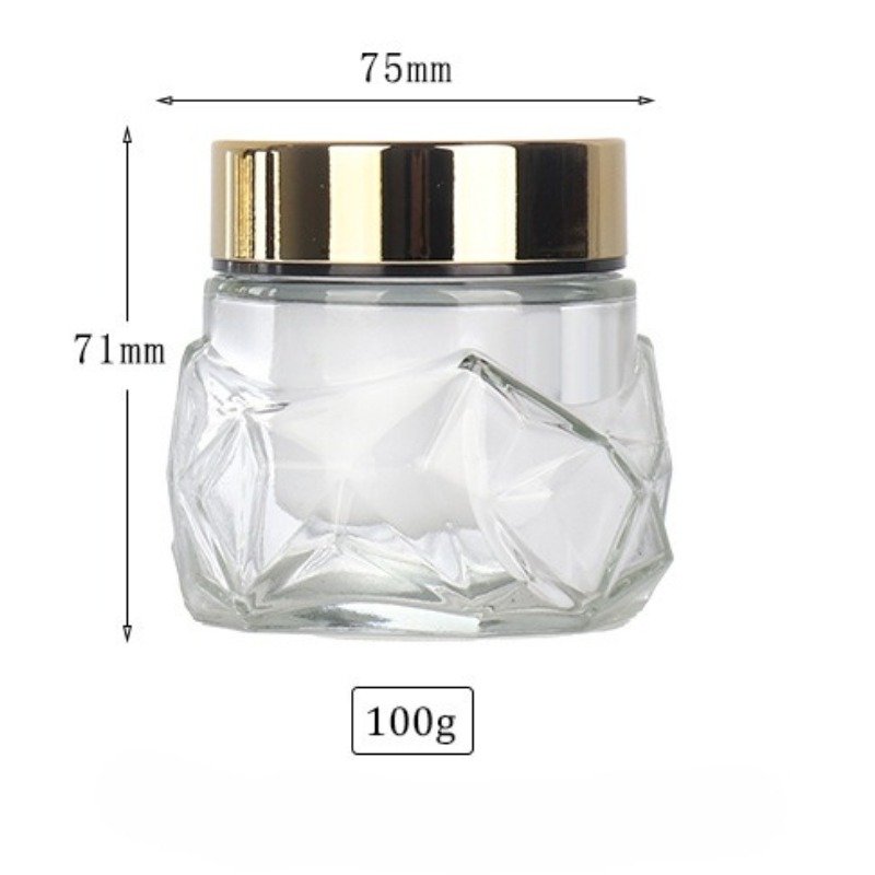 diamond cream jar, 100g frosted glass jar, airless cosmetic packaging, private label skincare jars, luxury cream containers, wholesale makeup packaging.