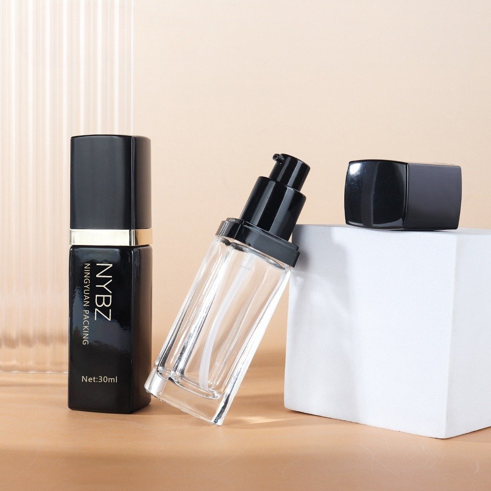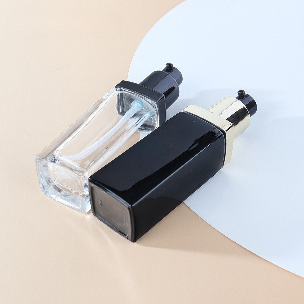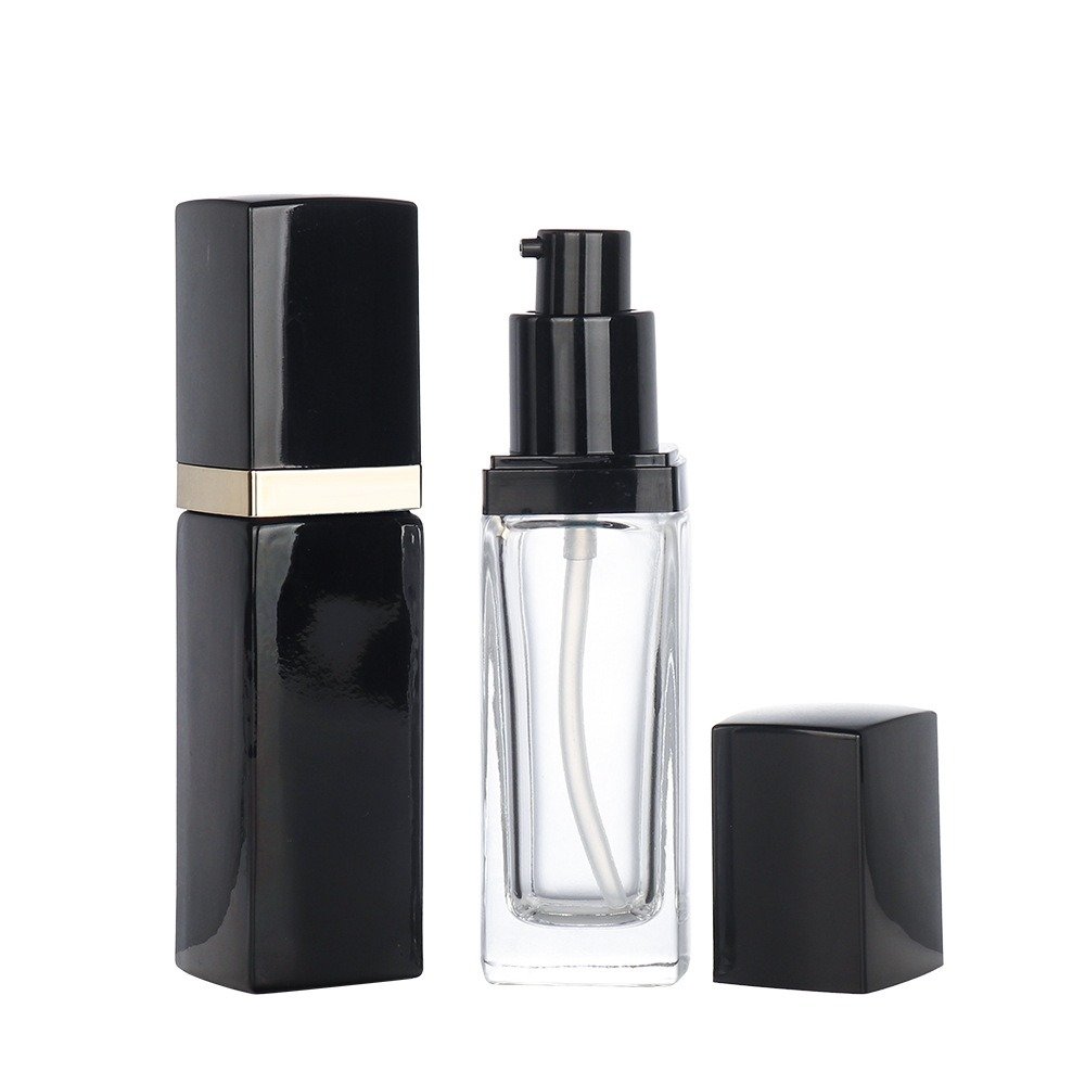 AMQ Glass offers a versatile range of foundation bottles, ranging from 5ml, 10ml, 20ml, to 30ml or even larger. This square 30ml 1oz empty foundation glass pump bottle is luxury new design with excellent quality.