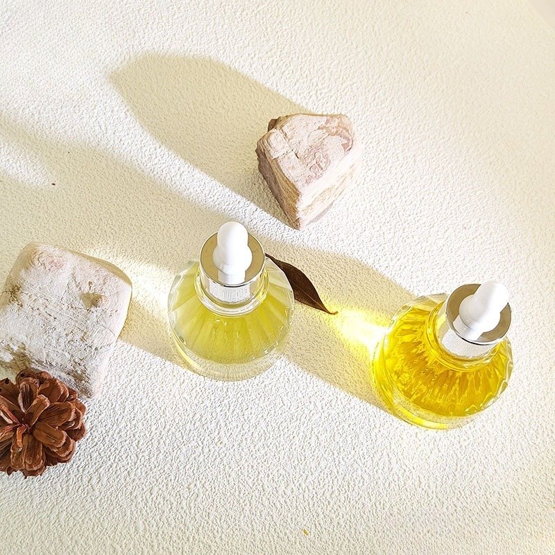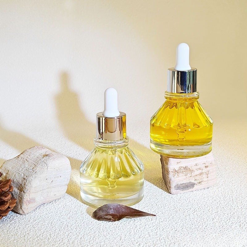 Product name: pagoda essential oil bottle, 30ml glass bottle, patterned dropper bottle, slanted shoulder bottle, luxury cosmetic packaging, essential oil packaging, serum bottle, custom glass bottle, wholesale cosmetic containers