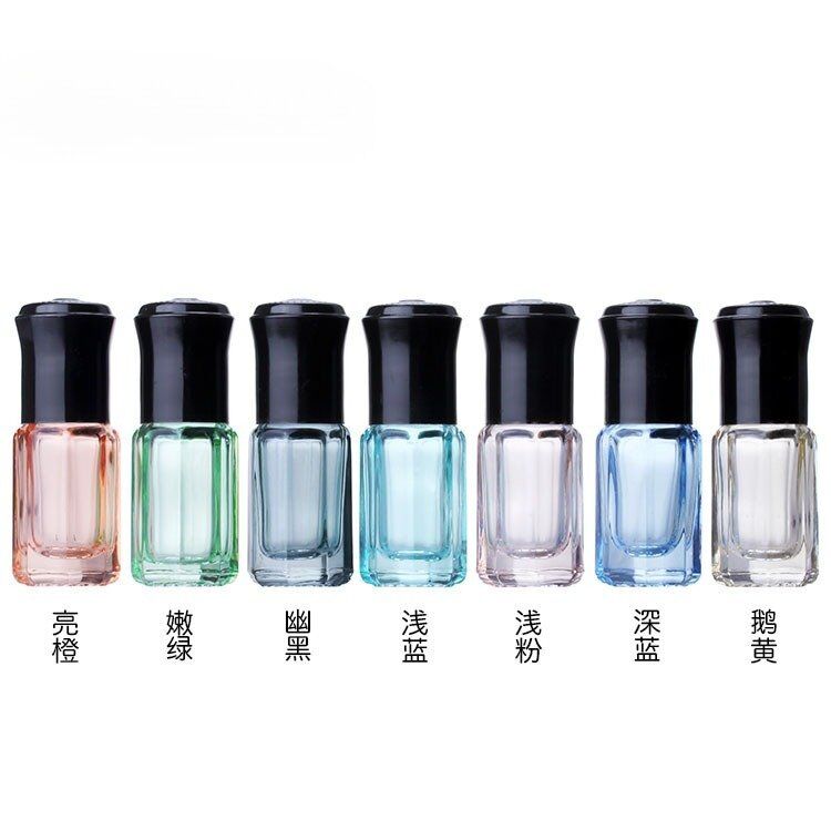3ml glass roller bottle with stainless steel ball and white/black cap – stock essential oil packaging or perfume packaging or serum bottle. wholesale or customize brand color and logo is supported.