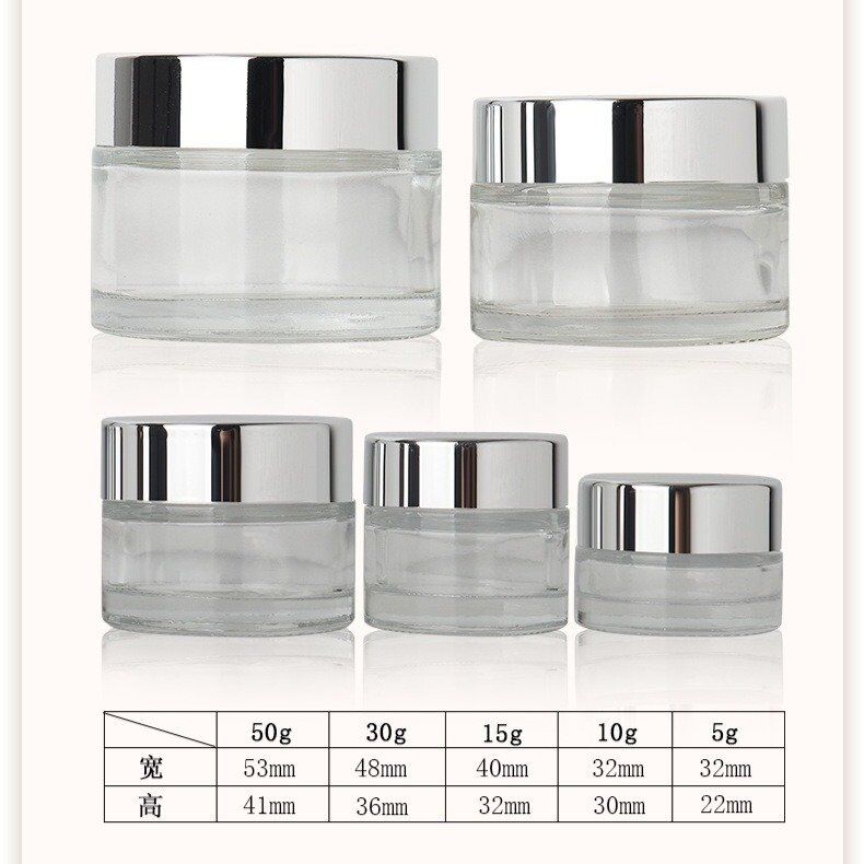 ★In addition to the size, we also need to pay attention to the material of the cream jar. At present, this glass cosmetic jars with a lid is composed of a glass bottle body + a plastic liner. The choice of volume and material needs to be customized according to the texture and usage requirements of the product.