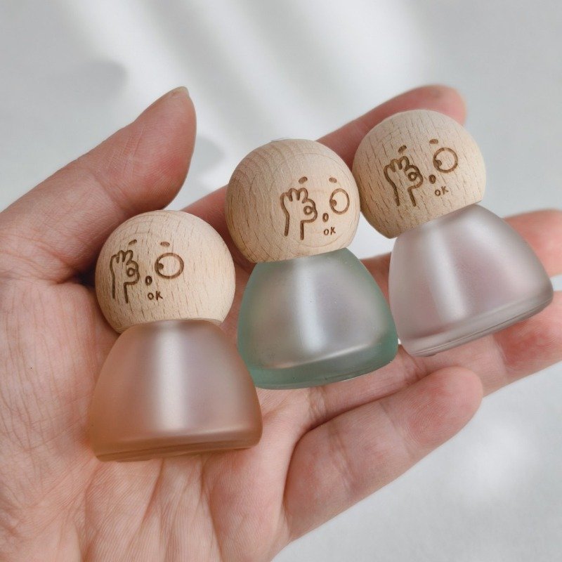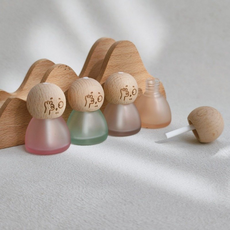Cute 8ml pagoda bottles (3.8×4.7cm) with wood ball tops. For essential oils only. Custom colors/logos. MOQ 1000. Not for alcohol liquids. Makes great home fragrance gifts. Free samples. Ships global.