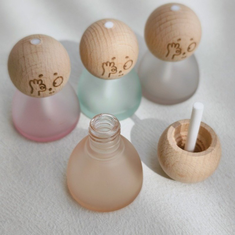 We make cute glass bottles for essential oils and home fragrances. These special bottles have wooden ball tops and look like little pagodas. Perfect for making any space smell nice – we accept orders from 500 pieces.
