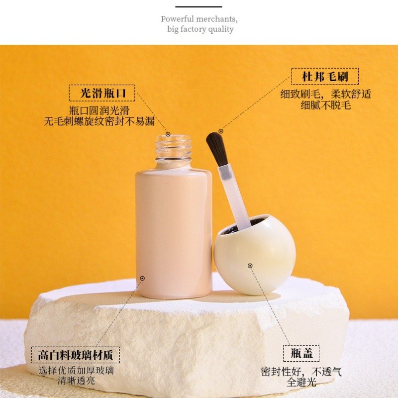New 10ml nail polish bottles with DuPont brush. Opaque white glass, sealed ball cap. MOQ 10,000. Ships in 2 weeks. Perfect for gel/polish brands. Free samples. Global delivery.
