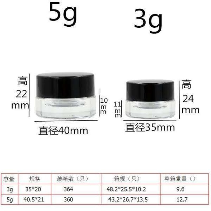 small glass jar transparent 3g 5g black lid white lid mini glass cream jar