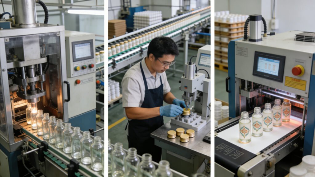 - Strict Quality Control (QC): A reputable supplier will conduct QC checks at various stages. This includes checking for defects in dimensions, color, decoration, and function (e.g., do droppers work smoothly?).